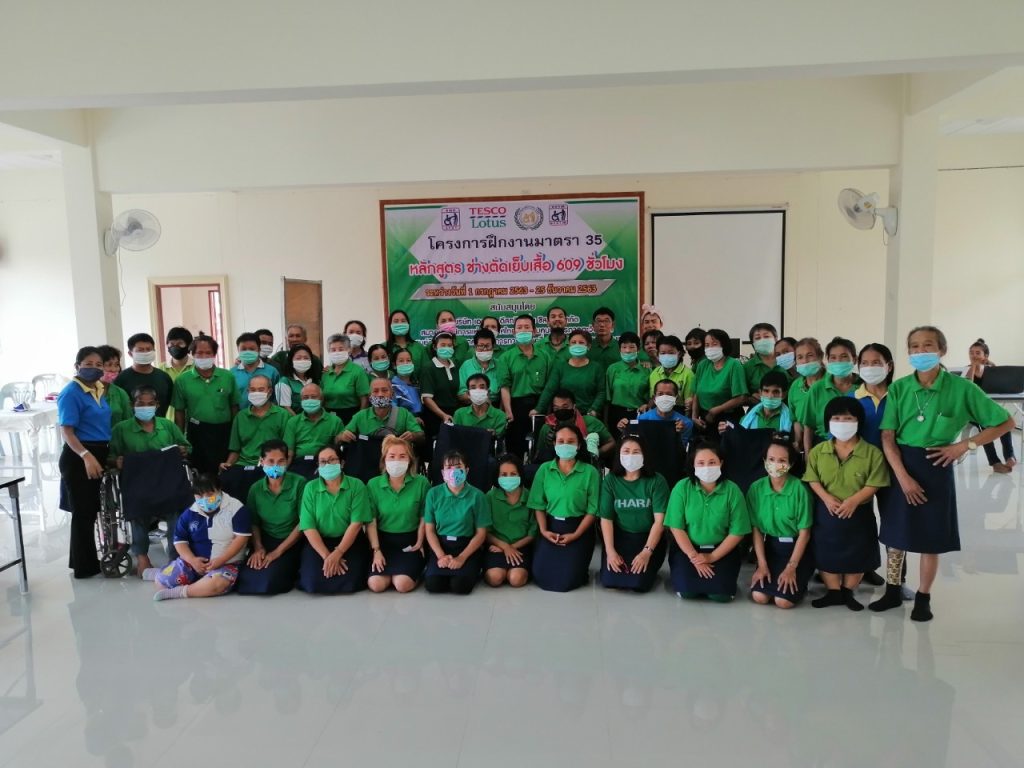 ภาพบรรยากาศการสร้างแบบและตัดเย็บกระโปรงของคนพิการและผู้ดูแลคนพิการที่เข้าร่วมโครงการฝึกงานมาตรา 35 หลักสูตรช่างตัดเย็บเสื้อผ้า 609 ชั่วโมง 6 เดือน ได้รับการสนับสนุนโครงการนี้โดย โลตัส บริษัทเอก-ชัย ดีสทริบิวชั่น ซิสเทม จำกัด และ สมาคมคนพิการภาคตะวันออก ณ ศูนย์ฝึกงาน สมาคมคนพิการทางการเคลื่อนไหวหรือร่างกายจังหวัดเชียงราย