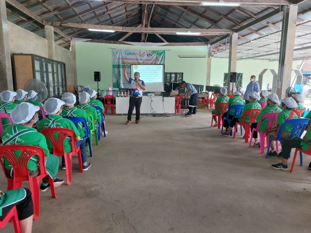 ภาพบรรยากาศการแบ่งปันความรู้ ความสามารถ ทักษะและประสบการณ์ในกิจกรรมความปลอดภัยในการทำงานของคนพิการและผู้ดูแลคนพิการที่เข้าร่วมโครงการฝึกงานมาตรา 35 หลักสูตรการทำเบเกอรี่ 600 ชั่วโมง 6 เดือน ได้รับการสนับสนุน โลตัส บริษัทเอก-ชัย ดีสทริบิวชั่น ซิสเทม จำกัด และสมาคมคนพิการภาคตะวันออก