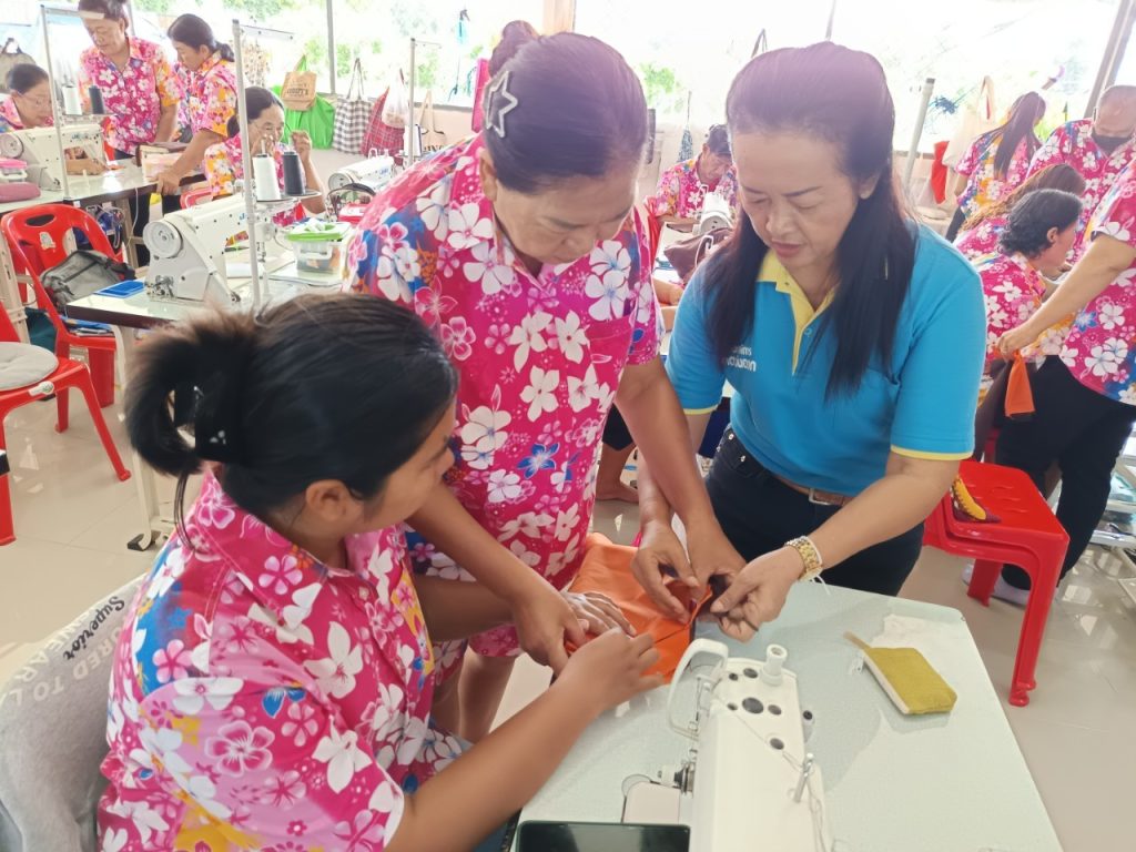หลักสูตรช่างตัดเย็บเสื้อผ้าระดับต้น อำเภอแสวงหา จังหวัดอ่างทอง โดยมีผู้เข้ารับการฝึกงานซึ่งเป็นคนพิการและผู้ดูแลคนพิการ จำนวน 60 คน ในวันนี้เป็นการสร้างและตัดเย็บกางเกงขาสั้น ขายาว โครงการนี้ฝึกทักษะตั้งแต่ยังเย็บผ้าไม่เป็น ไปจนถึงสามารถตัดเย็บได้ จนถึงเปิดร้านได้ ในระหว่างฝึกอบรมคนพิการและผู้ดูแลคนพิการจะรับเบี้ยเลี้ยงวันละ 328 บาท อาหาร 3 มื้อ อาหารว่าง 2 มื้อ และวัสดุอุปกรณ์ในการตัดเย็บเสื้อผ้า เมื่อจบหลักสูตรจะได้จักรเย็บผ้าแบบอุตสาหกรรมพร้อมเครื่องมือครบชุด สามารถไปประกอบอาชีพได้เลย มาแต่ตัวกับหัวใจ
