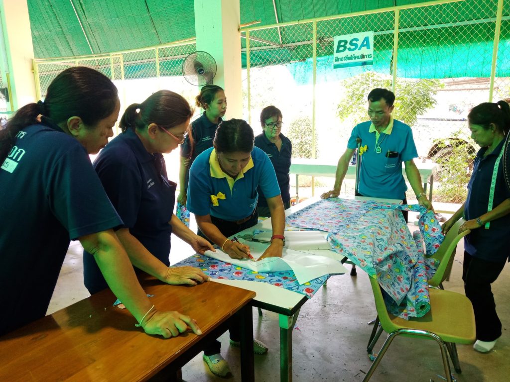 ภาพกิจกรรมการสร้างแบบและตัดเย็บกางเกงขาสั้นหรือกางเกงเจเจของคนพิการและผู้ดูแลคนพิการที่เข้าร่วมโครงการฝึกงานมาตรา 35 หลักสูตรช่างตัดเย็บเสื้อผ้า 609 ชั่วโมง 6 เดือน ได้รับการสนับสนุนจาก BSA บริษัทบิซิเนส เซอร์วิสเซส อัลไลแอนซ์ จำกัด (ในเครือปตท.) ร่วมกับสมาคมคนพิการภาคตะวันออก ณ ศูนย์ฝึกอาชีพสมาคมคนพิการจังหวัดอุตรดิตถ์