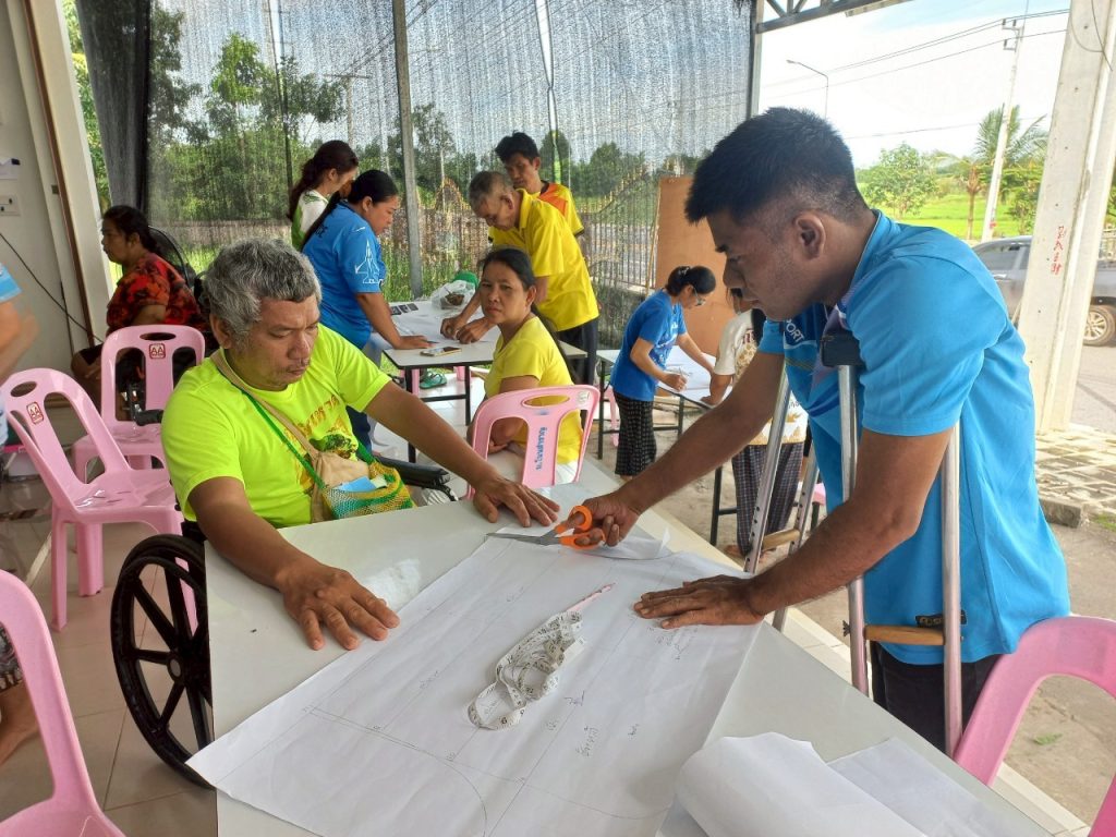 บรรยากาศการฝึกอบรมตัดเย็บกางเกงขาสั้น หรือ “กางเกงเจเจ” กำลังดำเนินไปอย่างเข้มข้น โดยมี วิทยากรมากประสบการณ์ คอยให้คำแนะนำและถ่ายทอดเทคนิคอย่างใกล้ชิด แก่คนพิการและผู้ดูแลคนพิการที่เข้าร่วม โครงการฝึกงานมาตรา 35 หลักสูตรช่างตัดเย็บเสื้อผ้าระดับต้น 600 ชั่วโมง (ระยะเวลา 6 เดือน)