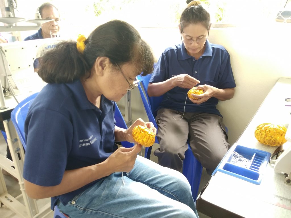 ภาพบรรยากาศการเย็บผ้าด้วยมือของคนพิการและผู้ดูแลคนพิการที่เข้าร่วมโครงการฝึกงานมาตรา 35 หลักสูตรช่างตัดเย็บเสื้อผ้า 609 ชั่วโมง 6 เดือน โดยได้รับการสนับสนุนจาก BSA บริษัท บิซิเนส เซอร์วิสเซส อัลไลแอนซ์ จำกัด (ในเครือ ปตท.)และ สมาคมคนพิการภาคตะวันออก ร่วมส่งเสริม สนับสนุนการฝึกอาชีพช่างตัดเย็บผ้าสำหรับคนพิการเป็นโอกาสสำคัญในการเสริมสร้างศักยภาพและสร้างรายได้ที่มั่นคง แนวทางการฝึกอาชีพนี้ต้องคำนึงถึงความหลากหลายของประเภทความพิการและความต้องการเฉพาะบุคคล ณ ศูนย์ฝึกอาชีพ สมาคมคนพิการจังหวัดสุพรรณบุรี