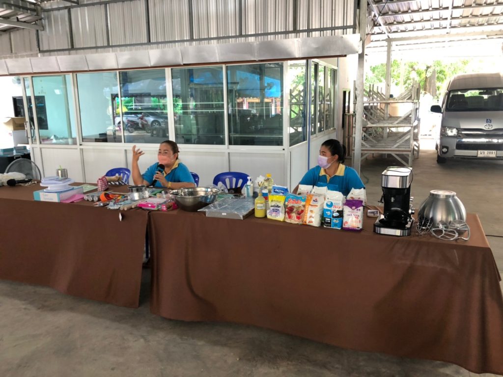 ภาพบรรยากาศการทำกิจกรรมความรู้ทั่วไปเกี่ยวกับการทำเบเกอรี่ของคนพิการและผู้ดูแลคนพิการที่เข้าร่วมโครงการฝึกงานมาตรา 35 หลักสูตรการทำเบเกอรี่ 600 ชั่วโมง 6 เดือน ได้รับการสนับสนุน PTG บริษัทปิโตรเลียมไทย คอร์ปอเรชั่น จำกัด และสมาคมคนพิการภาคตะวันออก ณ จุดฝึกงาน สมาคมคนพิการจังหวัดอ่างทอง