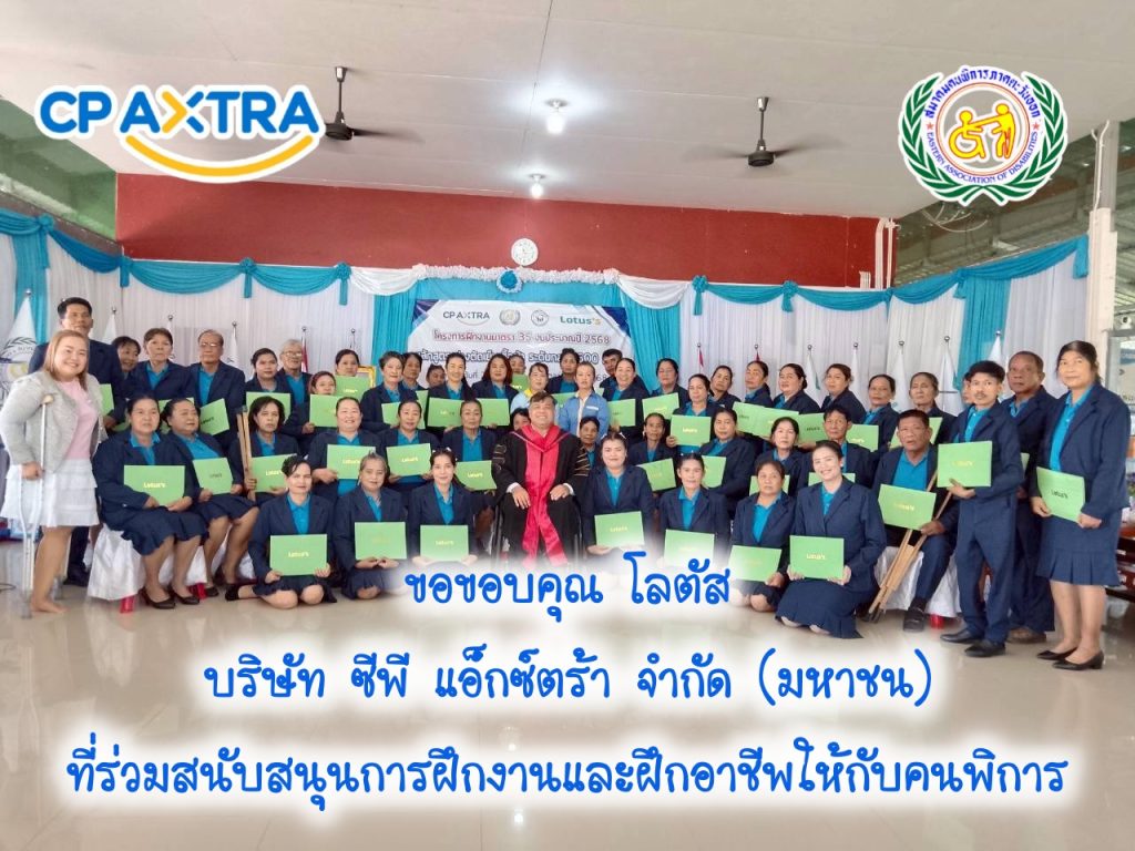 ขอขอบคุณ โลตัส บริษัท ซีพี แอ็กซ์ตร้า จำกัด (มหาชน) ที่ร่วมสนับสนุนการฝึกงานและฝึกอาชีพให้กับคนพิการ นับเป็นพลังสำคัญในการยกระดับคุณภาพชีวิตคนพิการและผู้ดูแลคนพิการให้ดีขึ้นอย่างแท้จริง ณ ศูนย์ฝึกอาชีพ ชมรมคนพิการทางการเคลื่อนไหวอำเภอแสวงหา จังหวัดอ่างทอง