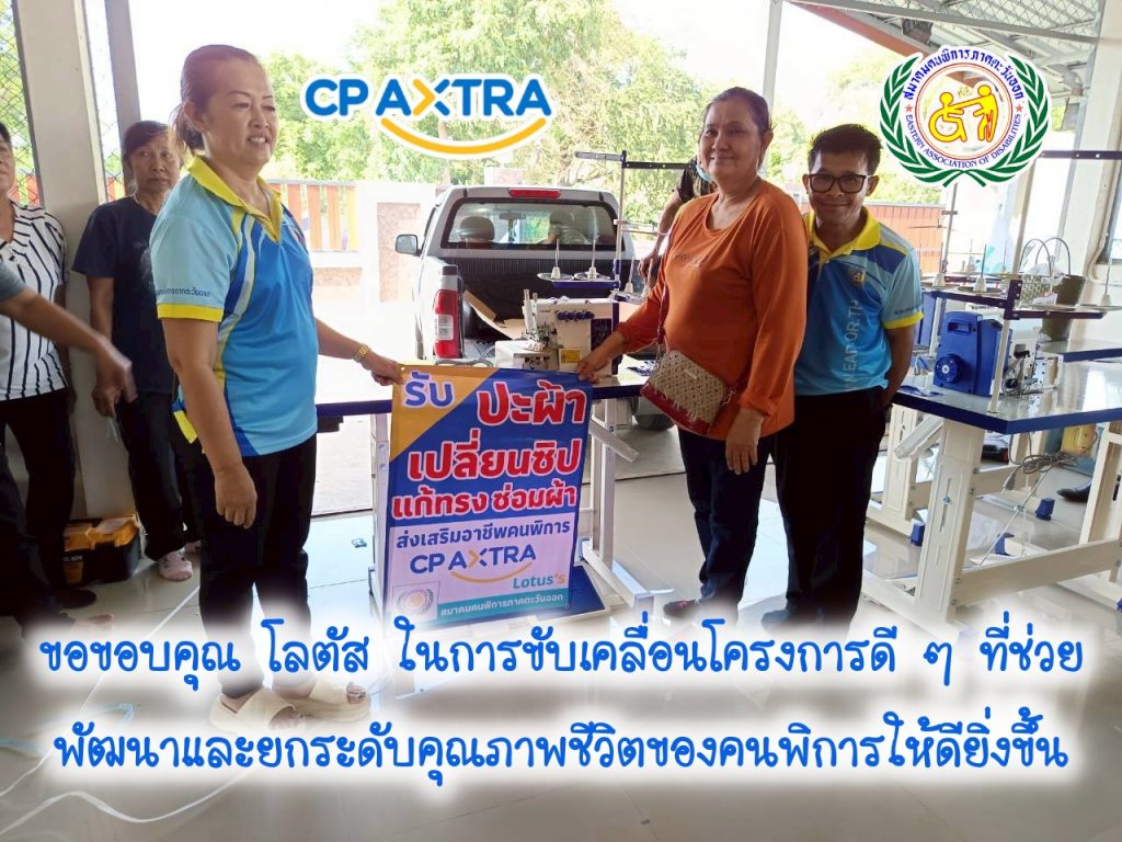 ขอขอบคุณ โลตัส หรือ บริษัท ซีพี แอ็กซ์ตร้า จำกัด (มหาชน) ที่ให้การสนับสนุนร่วมกับ สมาคมคนพิการภาคตะวันออก และ ชมรมคนพิการทางการเคลื่อนไหวอำเภอแสวงหา จังหวัดอ่างทอง ในการขับเคลื่อนโครงการดี ๆ ที่ช่วยพัฒนาและยกระดับคุณภาพชีวิตของคนพิการให้ดียิ่งขึ้น