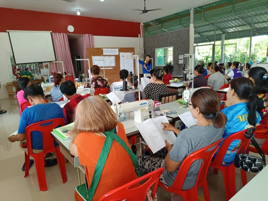 กิจกรรมการสร้างแบบและตัดเย็บถุงผ้าหรือกระเป๋าผ้าของคนพิการและผู้ดูแลคนพิการเข้าร่วมโครงการฝึกงานมาตรา 35 หลักสูตรช่างตัดเย็บเสื้อผ้า ระดับต้น 600 ชั่วโมง 6 เดือน ณ จุดฝึกอาชีพ ชมรมคนพิการทางการเคลื่อนไหวอำเภอแสวงหา จังหวัดอ่างทอง